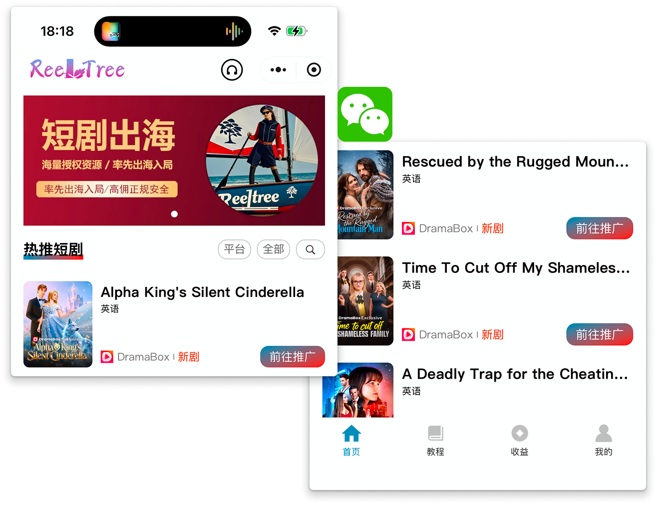 ReelTree collaborates with over 15 short-drama platforms worldwide and integrates with major global social and video platforms.